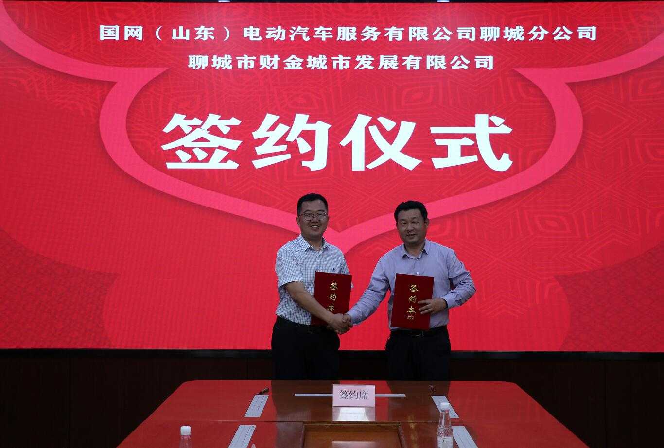 4月27日,聊城市財金城市發(fā)展有限公司與國網(wǎng)(山東)電動汽車服務有限公司聊城分公司在市財金集團簽署《戰(zhàn)略合作協(xié)議》,國網(wǎng)(山東)電動汽車服務有限公司聊城分公司總經(jīng)理展云峰,市財金集團總經(jīng)理助理、城市發(fā)展公司董事長王躍現(xiàn)場簽約。