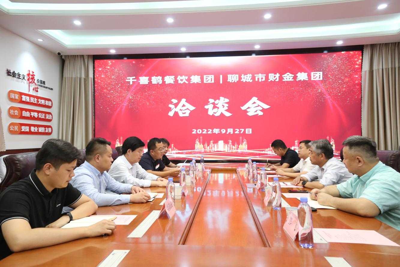 9月27日下午,千喜鶴餐飲集團總裁李中明、華東區(qū)總裁魏武等人一行受邀來到市財金集團,雙方召開洽談會,共同就聊城市餐飲服務(wù)項目合作事宜進行交流對接。市財金集團黨委書記、董事長張繼堯,董事會秘書、總經(jīng)理助理、財金城市發(fā)展公司董事長王躍及有關(guān)負責人出席會議。